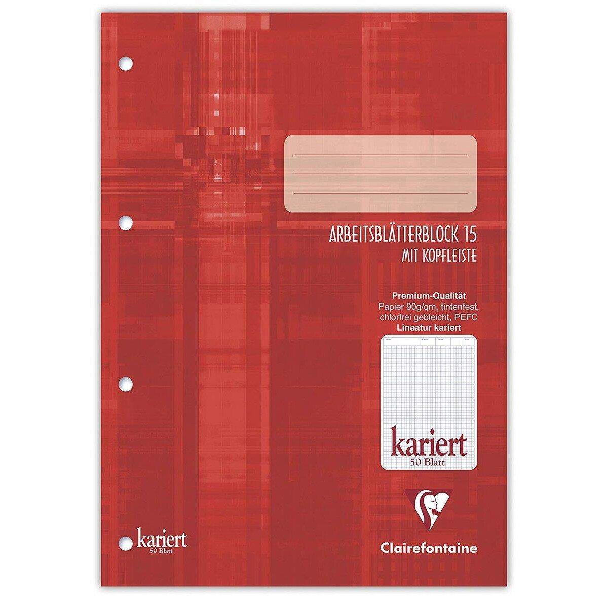 Clairefontaine Arbeitsblätterblock DIN A4, 50 Blatt, kariert