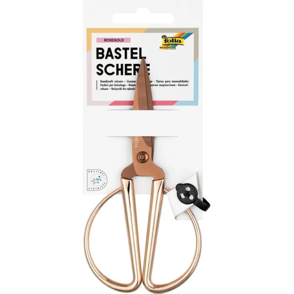 Die etwa 145 mm lange Bastelschere ist ein echter Blickfang im Büro oder Homeoffice. Diese eignet sich hervorragend zum präzisen Schneiden von Papier, Karton, Stoff, Pflanzen, Wolle/Garn und vielem mehr. Mit dem großen und ergonomischen schwarzen Griff macht das Basteln so gleich viel mehr Spaß. Die goldene rostfreie Klinge aus Stahl ist für Rechtshänder geeignet.