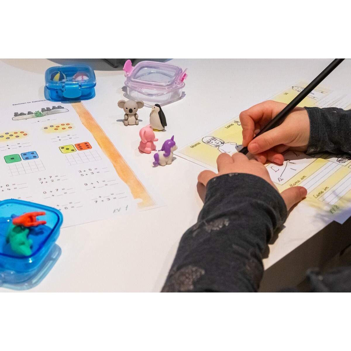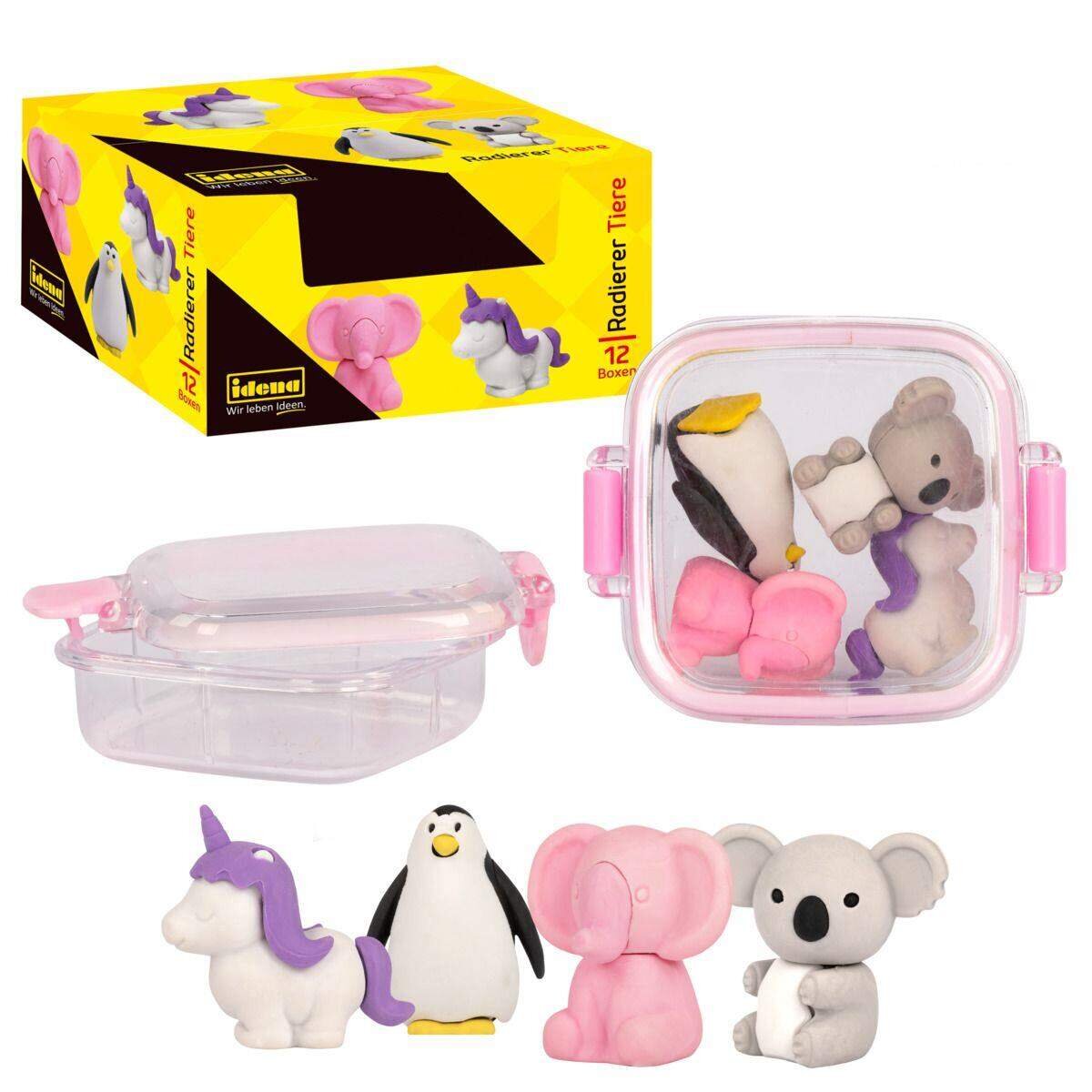 Mit den Idena Motivradierern wird das Radieren zum Vergnügen! Die Box enthält vier Radiergummis mit süßen Tiermotiven: Ein Einhorn, ein Koala, ein Elefant und ein Pinguin. Die Radierer sind für Bleistifte und Buntstifte konzipiert. Sie entfernen sauber und präzise unerwünschte Striche und Markierungen. Die praktische Aufbewahrungsbox schützt die Radierer vor Staub und Beschädigungen und sorgt dafür, dass sie immer griffbereit sind. Ideal für Schüler, Studenten und alle, die Freude an kreativem Schreiben und Zeichnen haben.