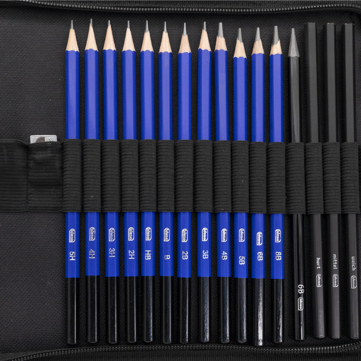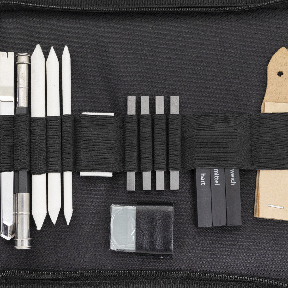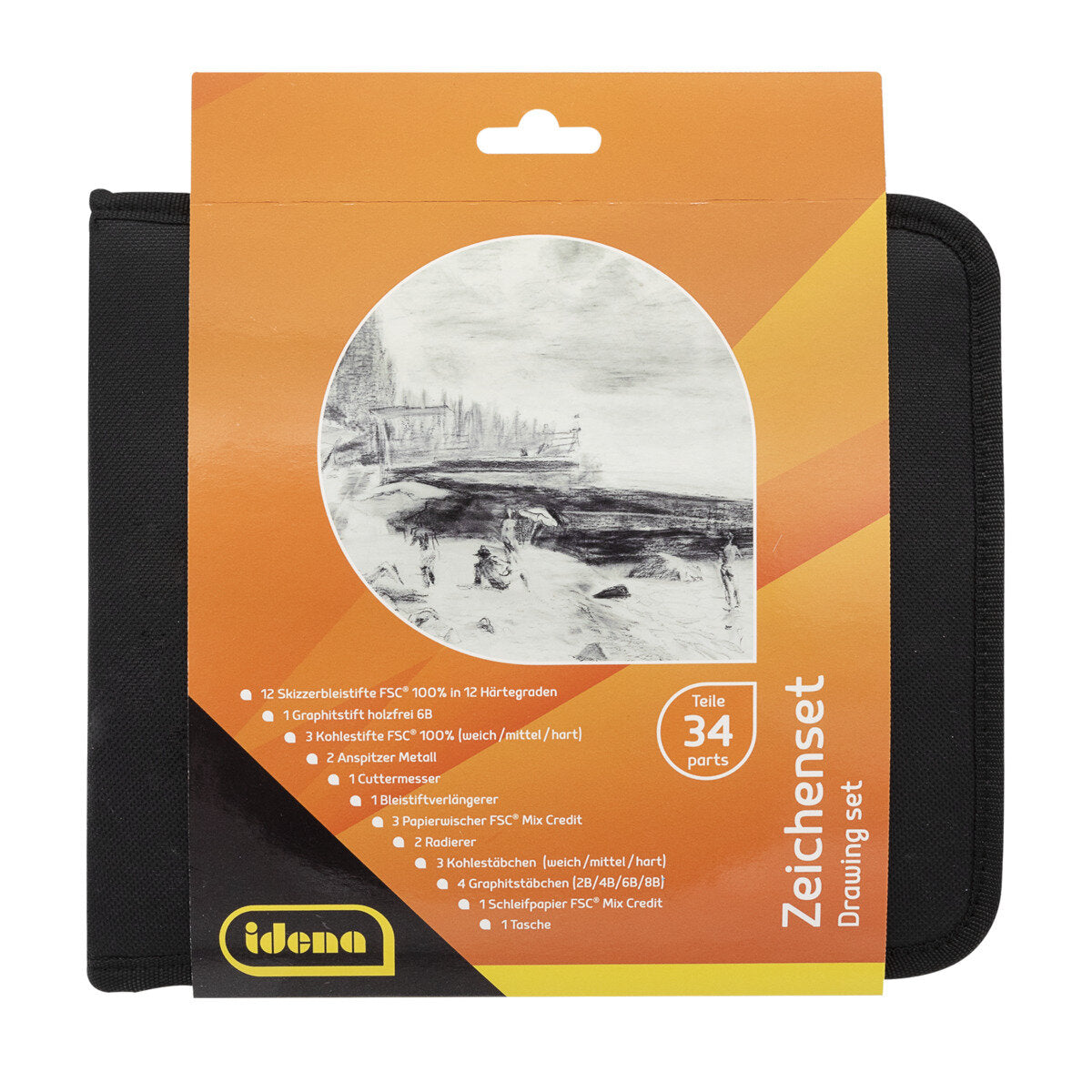 Ein Zeichenset von Idena mit 34 Teilen in einer praktischen Tasche.