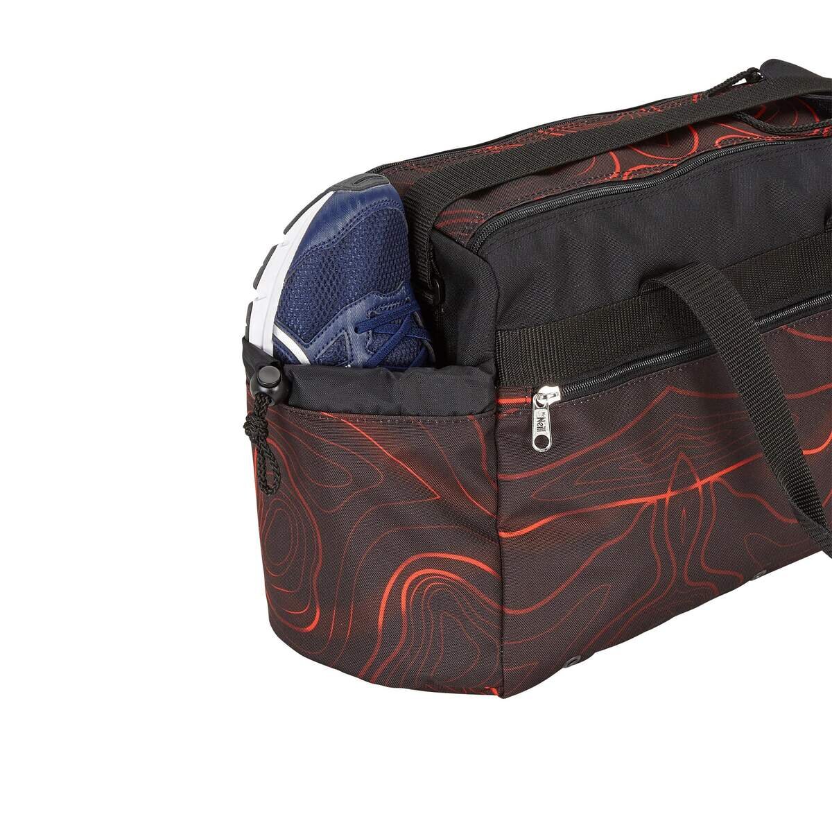 Die stylische Sporttasche von McNeill ist der ideale Begleiter für den Sportunterricht und den Freizeitsport. Neben dem großen Hauptfach mit Reißverschluss verfügt die Sporttasche über zwei Kordelzugtaschen an den Seiten, wo z.B. Getränkeflaschen untergebracht werden können. Vorne hat die Sporttasche ein großes Nassfach für die Schwimmsachen und das nasse Handtuch. Für ein angenehmes Tragegefühl sorgen der verstellbare Umhängegurt und die beiden Tragegurte.