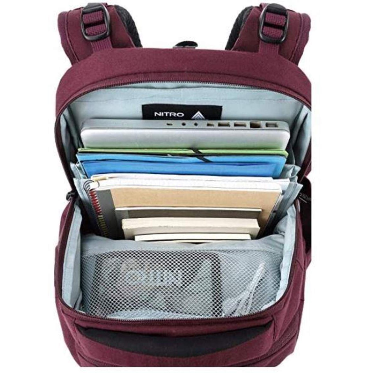 Der Nitro Superhero Rucksack zählt mit seinen 30 Litern Volumen zu den mittelgroßen Schulrucksack Modellen von Nitro. Ob im Schulalltag oder in der Freizeit. Der Nitro Superhero Ranzen bietet dir viel Platz und Stauraum und überzeugt der durch seine übersichtliche und durchdachte Fächeraufteilung. Im geräumigen Hauptfach des Nitro Schulrucksacks verstaust du Schulbücher, Hefte, einen Block und das Federmäppchen bequem und praktisch. Ein zweites Hauptfach dient zum Transport von Stiften, Handy und Accessoires für Schule und Freizeit. Zudem verfügt der Nitro Superhero Schulrucksack über ein Frontfach mit Kühl / Thermo Funktion für frische Pausen-Snacks, eine praktische Seitentasche für deine Trinkflasche, sowie ein fleecegefüttertes Sonnenbrillenfach. Für einen rückenschonenden Tragekomfort besitzt der Nitro Superhero 30L Rucksack ein ergonomisches Rückenelement. Ein Brustgurt, sowie einen breiter, abnehmbarer Hüftgurt sorgen für einen angenehmen und körpernahen Sitz. Die stabile Bodenplatte verleiht dem trendigen Nitro Pack zusätzliche Standfestigkeit.360° Grad Reflektoren gewährleisten dir auch in Dämmerung und Dunkelheit optimale Sicherheit. Egal ob auf Reisen, in der Schule oder im Alltag: Der Nitro Superhero Freizeitrucksack überzeugt durch sein durchdachtes Konzept, sein trendiges Design und seine hochwertige Verarbeitung.