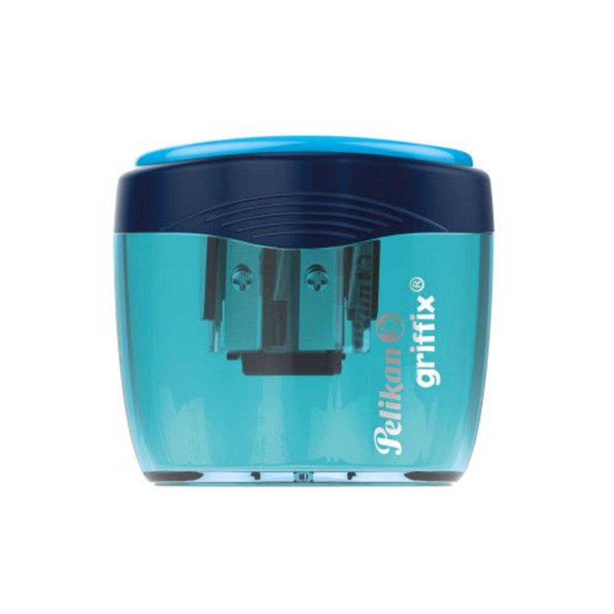 Pelikan griffix Doppeldosenanspitzer mit speziellem Lochverschluss, der den Span sicher im Container hält. Für holzgefasste Stifte Standard und dick. Qualitätsmesser "Made in Germany" für langanhaltend präzise Anspitzergebnisse. Stabil stehender, transparenter Container mit einfachem Clickverschluss zum Entleeren.