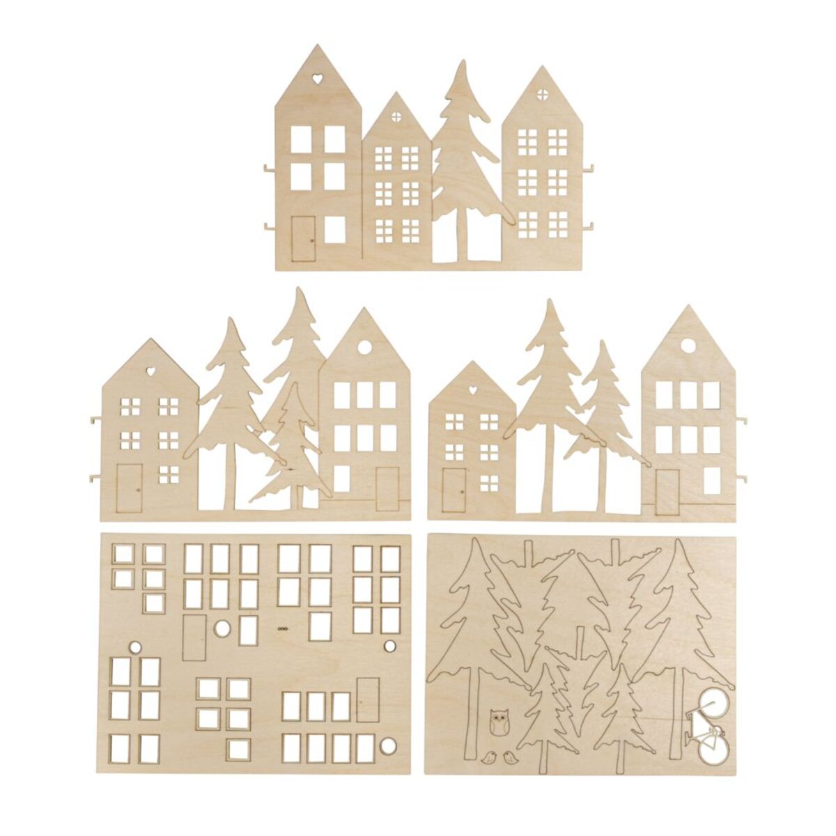 Rayher Holz Häuserfassaden Deko Set1 Aufsteller 64-teilig 3x 19,5x14cm