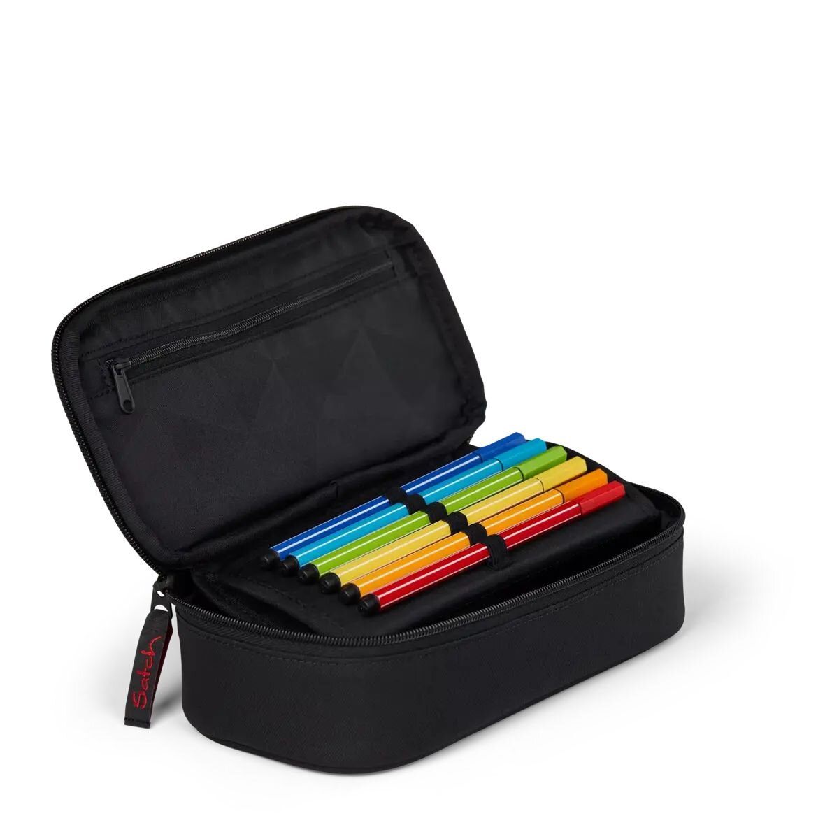 - Für unsere satch Produkte verarbeiten wir nachhaltige Textilien, die bis zu 100% aus recycelten PET-Flaschen hergestellt sind.