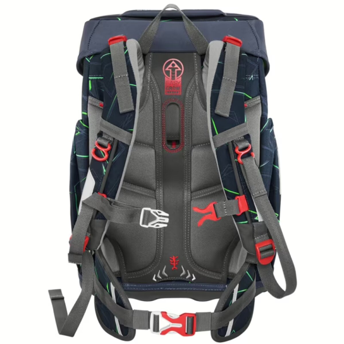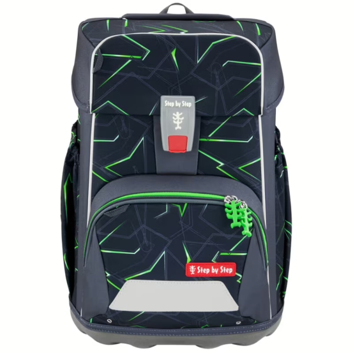 Tragekomfort/Ergonomie Ultraleichte Rückenkonstruktion aus Fieberglas Anatomisch geformte Schulterträger, höhenverstellbar (EASY GROW SYSTEM) Lageverstellriemen Höhenverstellbarer, abnehmbarer Brustgurt Abnehmbarer Hüftgurt Ergonomisch geformte Rückenpartie Atmungsaktives Rückenpolster Verstaumöglichkeiten Hauptfach mit integriertem Bücherfach Nach außen wachsende, isolierte Vordertasche mit Auslaufösen Seitentaschen mit Gummizug Laschen zur Fixierung des Federmäppchens unter dem Deckel Sicherheit Reflektierende Elemente aus an Fronttasche, Seitentaschen und Schultergurten Weitere Features Leicht bedienbarer Fidlock-Magnetverschluss Aufhängungen zum Verstauen der Enden der Schulterriemen Aufhängeschlaufe Stabile, wasserabweisende Bodenplatte mit Stellfüßen Namens- und Adressfeld im Deckel Kleines Fach mit Schlüsselanhänger im Hauptfach Lieferumfang 1 Schulranzen 1 Federmäppchen, komplett bestückt mit Markenstiften 7 Jumbo Farb-Markenstifte 12 Farb-Markenstifte 1 Bleistift 1 Step by Step Lineal 1 Step by Step Dreieckslineal 1 Step by Step Doppelspitzer 1 Radiergummi 1 Schlampermäppchen 1 Sportbeutel 1 Set MAGIC MAGS (2 Applikationen und 1 Anhänger)